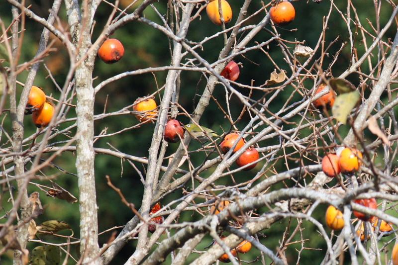 メジロちゃん、おいしそうに柿の実を半分も食べていました。 -