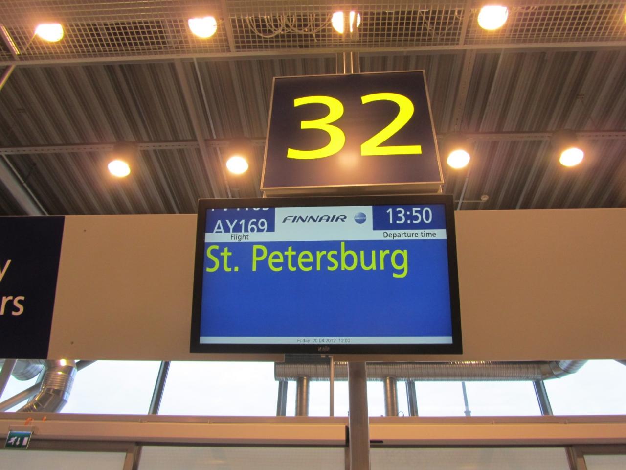「サンクトペテルブルク」と読んでいますが、表示の通り、英語で「セント・ピーターバーグ」と発音したほうが空港では通りが良いようです。 -
