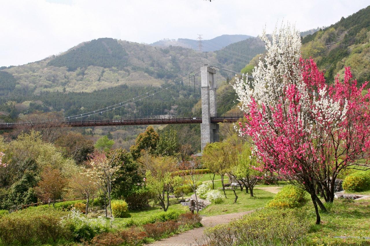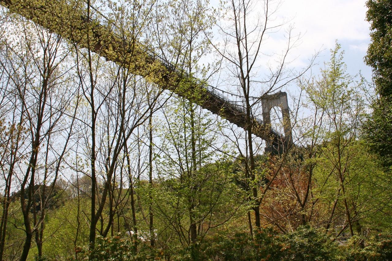 公園の中央に架かる公園のシンボル的存在の大きな吊り橋 「風の吊り橋」 が新緑に映えて本当に綺麗でした。