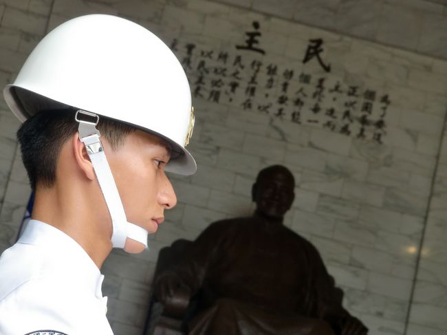 中正紀念堂へ。かつて、台湾を治めた中国国民党政府の故蒋介石総統を記念し建てられました。