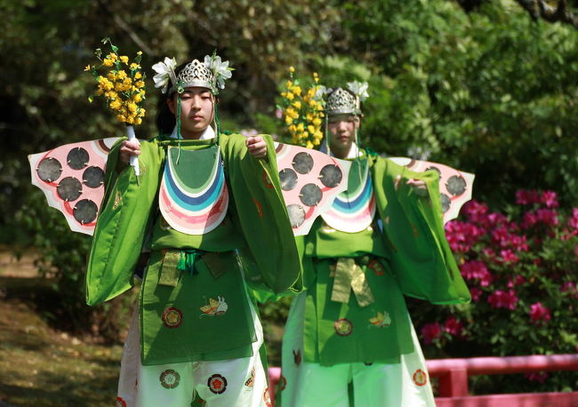 ツツジの花を頭に付けての可愛いらしい舞 -