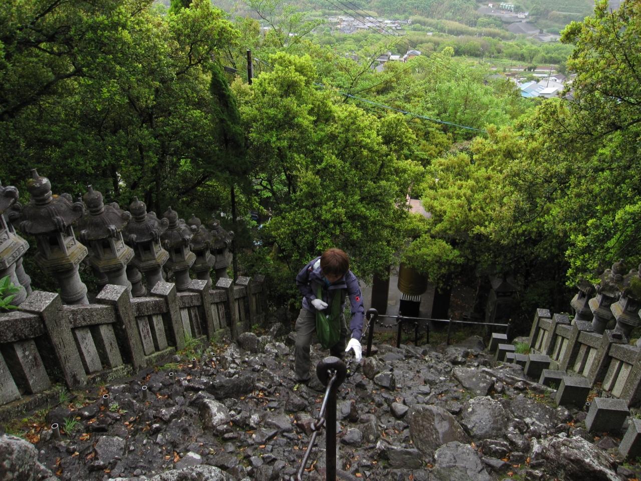 写真ではわかりづらいけれど石段は手前が低くなっているので、雨で滑るし下りがとっても怖かった。