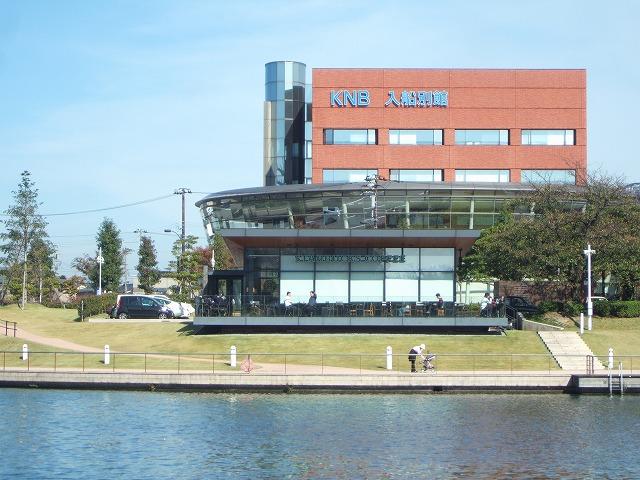 スターバックスが都市公園内に出展したのは、この店舗が国内初だそうです。後ろに見えるのは富山の民放の北日本放送(日テレ系列)の建物です。 -
