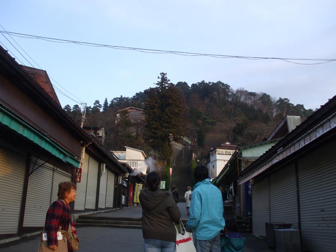 飯盛山下でハイカラさんを下車。飯盛山の入口周辺には土産屋が並んでいたが、時間のせいか季節のせいか、ほとんどの店が閉まっていた。 -