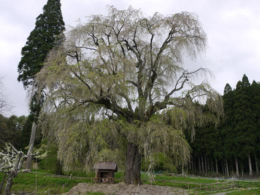 樹齢250年の巨木のシダレ桜、満開だったら見事だっただろうなぁ〜〜。