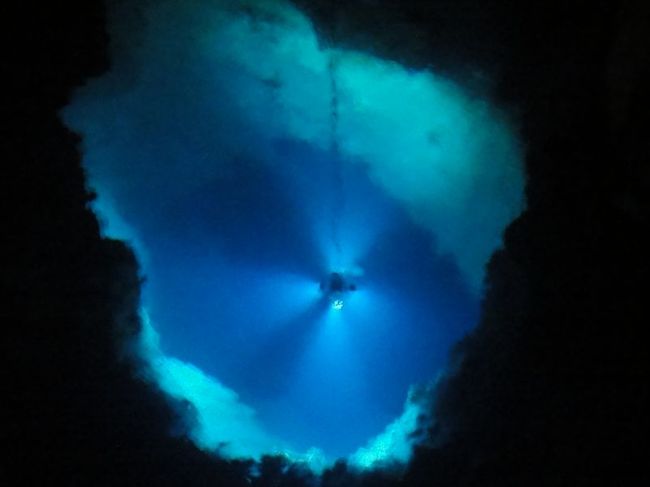 なんと水深98mだそうです。落ちたらヤバイね。しかも奥はまだ調査中らしい。どんだけでかいねん。
