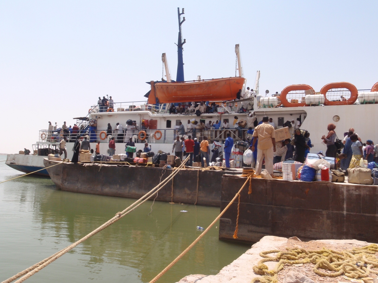どんなもんだろうと、当日、アスワンハイダムの港に行くと、大勢のエジプシャンとスーダニーズが大量の荷物を引っさげて、待機していました。
