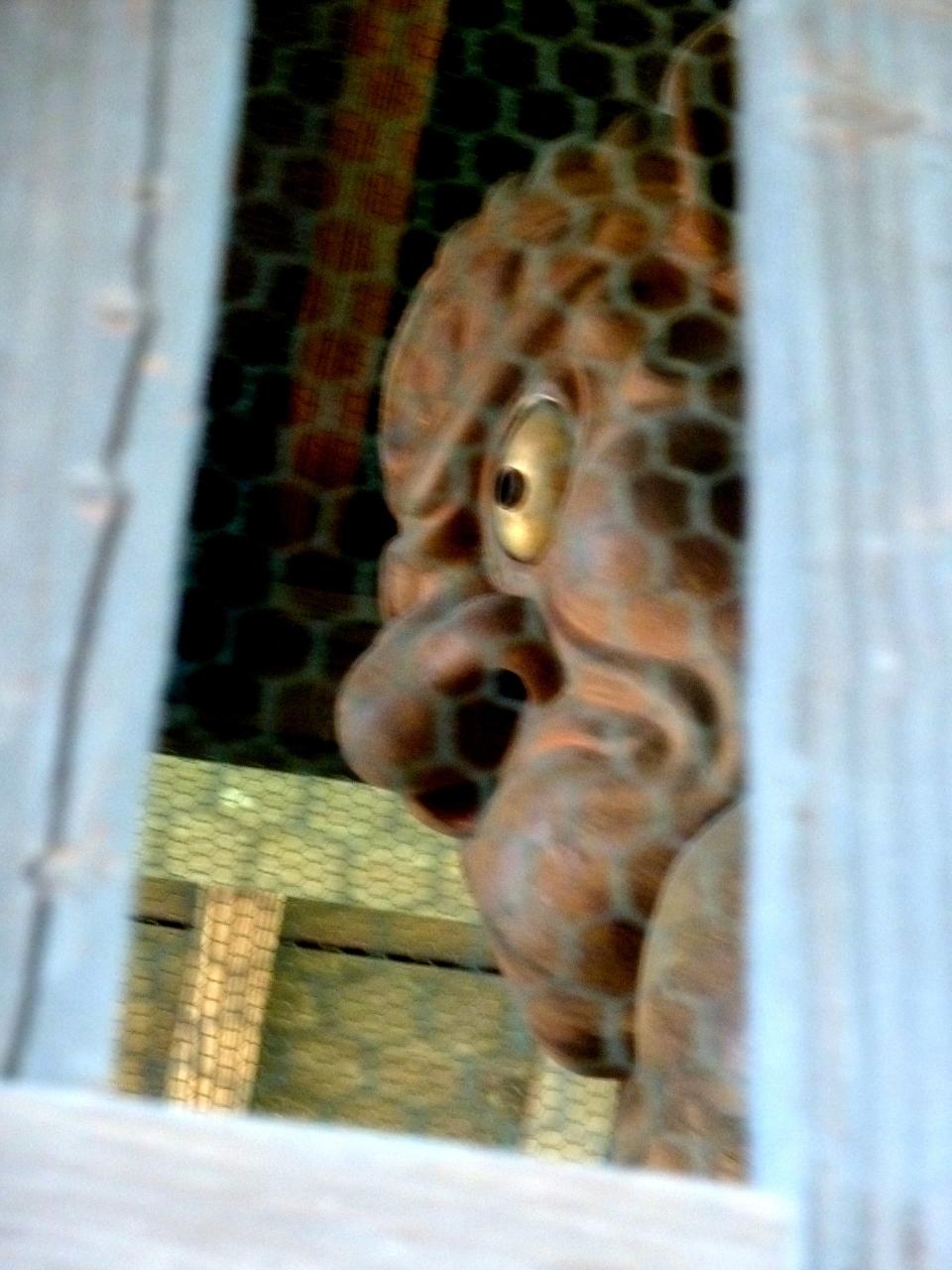 近付いて見ると、1個の巨大草鞋と数足の普通の草鞋が吊り下げられている不思議な仁王門。