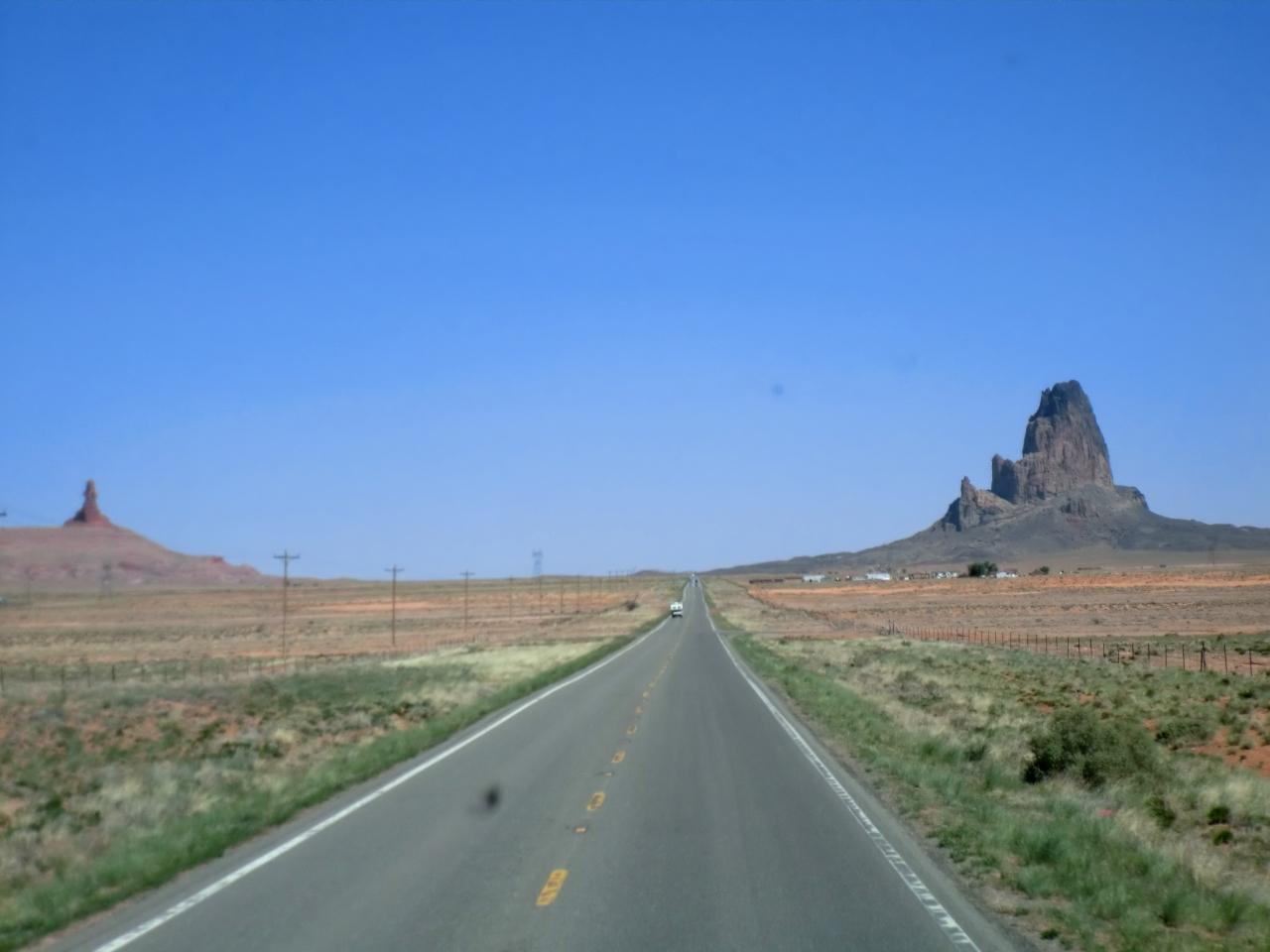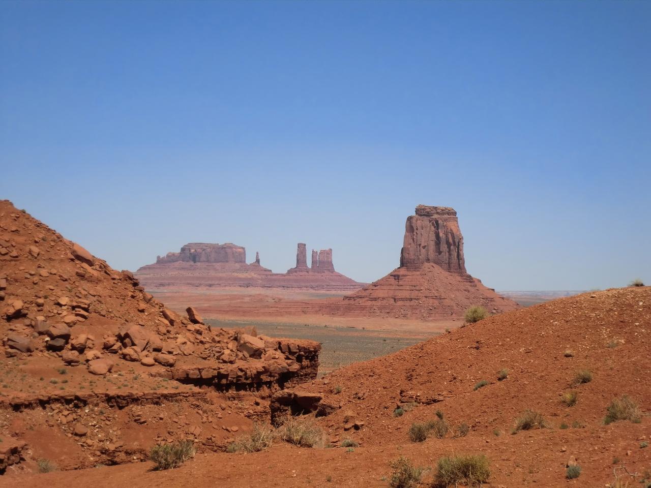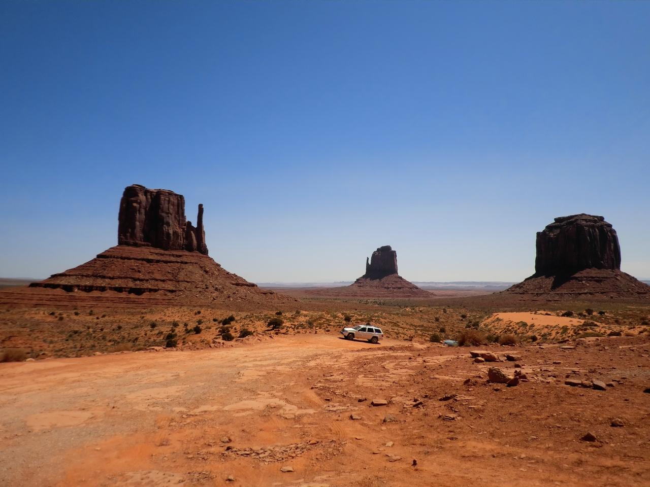 アメリカ西部の原風景が広がる、モニュメントバレーが見えてきました。