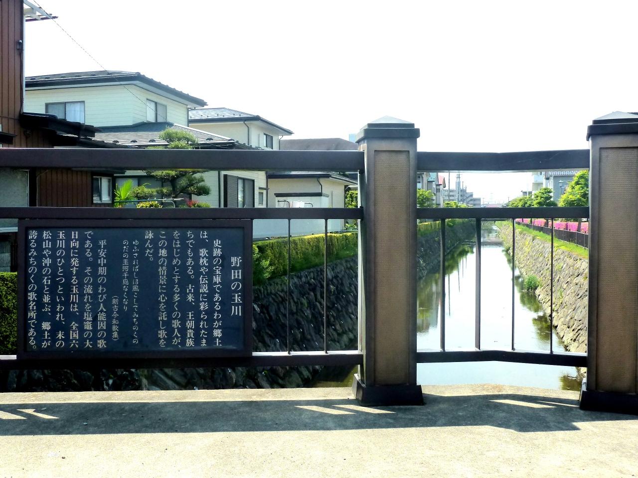 留ケ谷地区の東北学院大学の北東に玉川に架かる橋があり、橋の入り口の欄干に”野田の玉川”と書いてある。