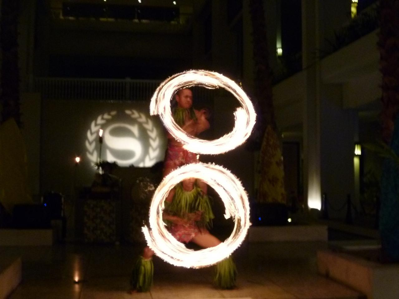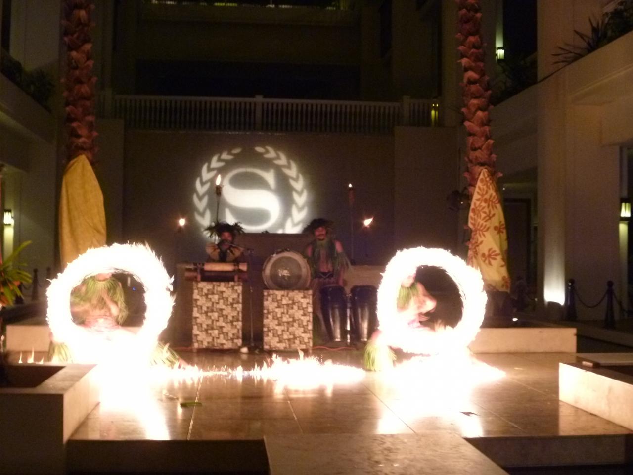 初日のディナーはシェラトンでポリネシアンショーを見ながら。