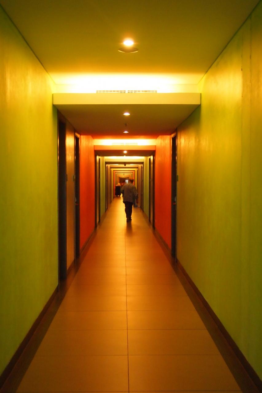 今回の部屋はこの廊下の先
