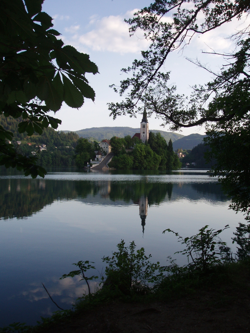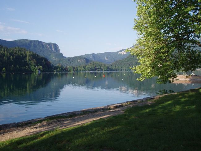 早朝のホテルのベランダからブレッド城。これで、見納め。