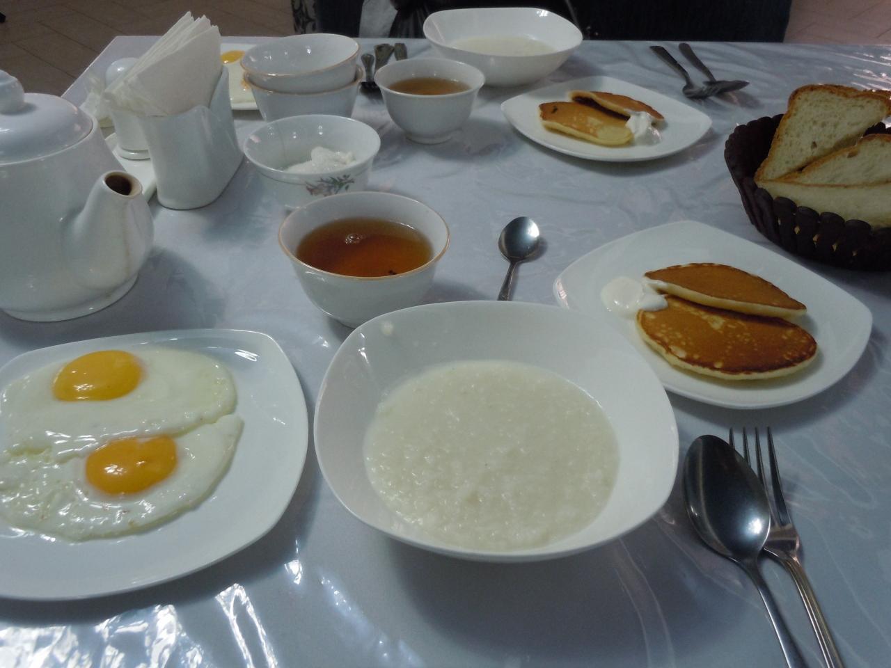 おはようございます。なにげにこの旅で初めてのホテル朝食。炭水化物ばっかりだ。真ん中のお粥だかオートミールだかは激甘です。おええ。
