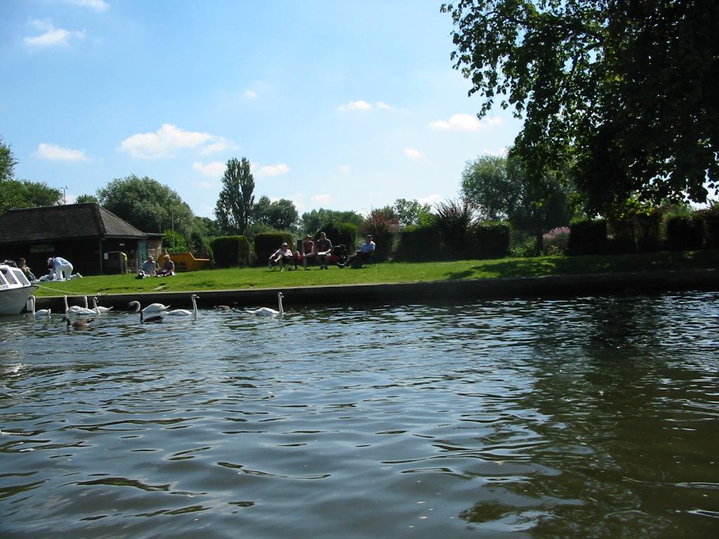 人の少ない川沿いに来ると遊覧船が、船でエイボン川を一周し、シェークスピアの生家をそしてシェークスピアの眠るホーリートリニティ教会も訪れました。