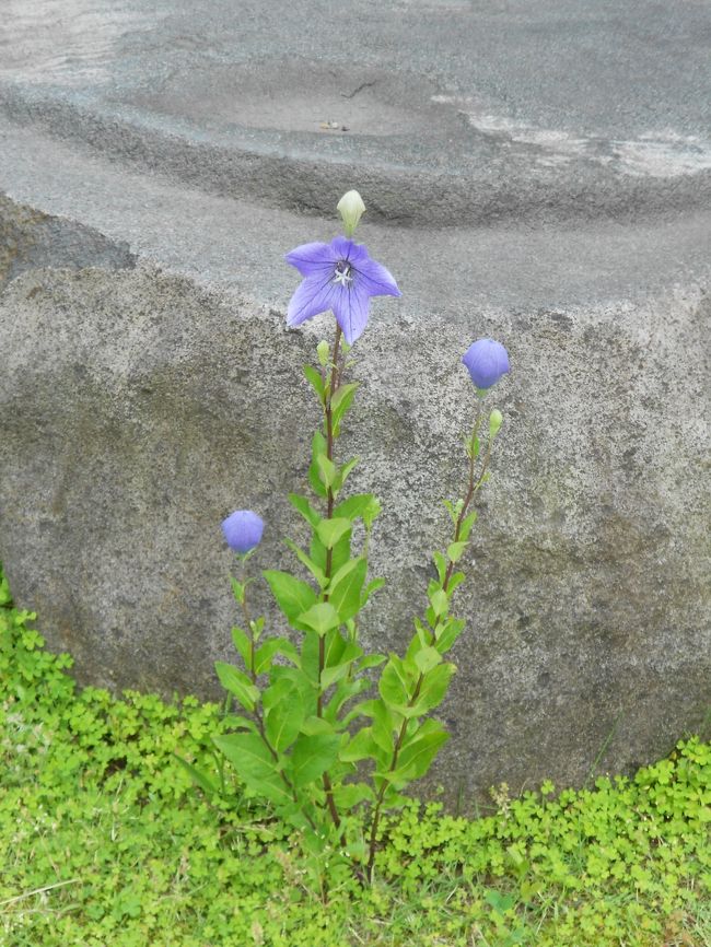 石仏と花(ハルシャギク)