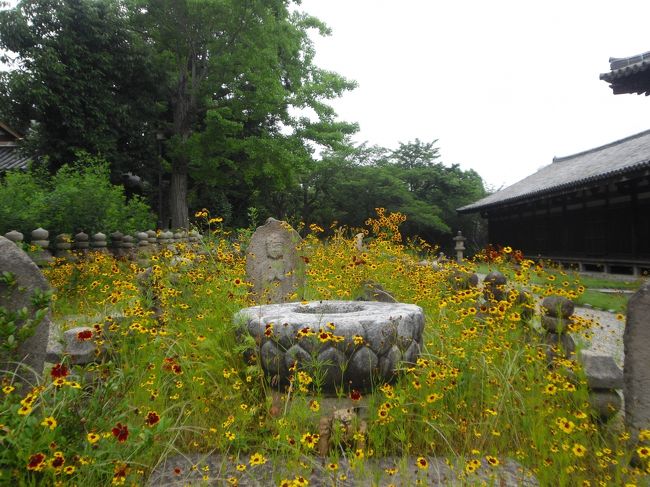 世界遺産「古都奈良の文化財」である「元興寺」を訪れました。古い町並みとお洒落なお店が集まる「ならまち」その一角にひっそりと佇む「元興寺」。かつては大寺院であっただろうと、古の浪漫を感じながら東門をくぐって中に入ると、存在感のある美しい建物「国宝の極楽堂と禅室」そして行基葺きの瓦が目に留まりました。そしてお堂の前には、素朴な石仏と草花が。なんとなく心落が落ち着ついてほっとするような、素敵なお寺でした。