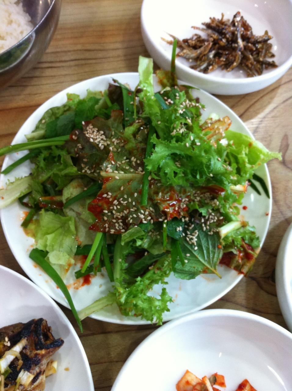 淡泊なので、ニンニクやサムジャンと一緒に
