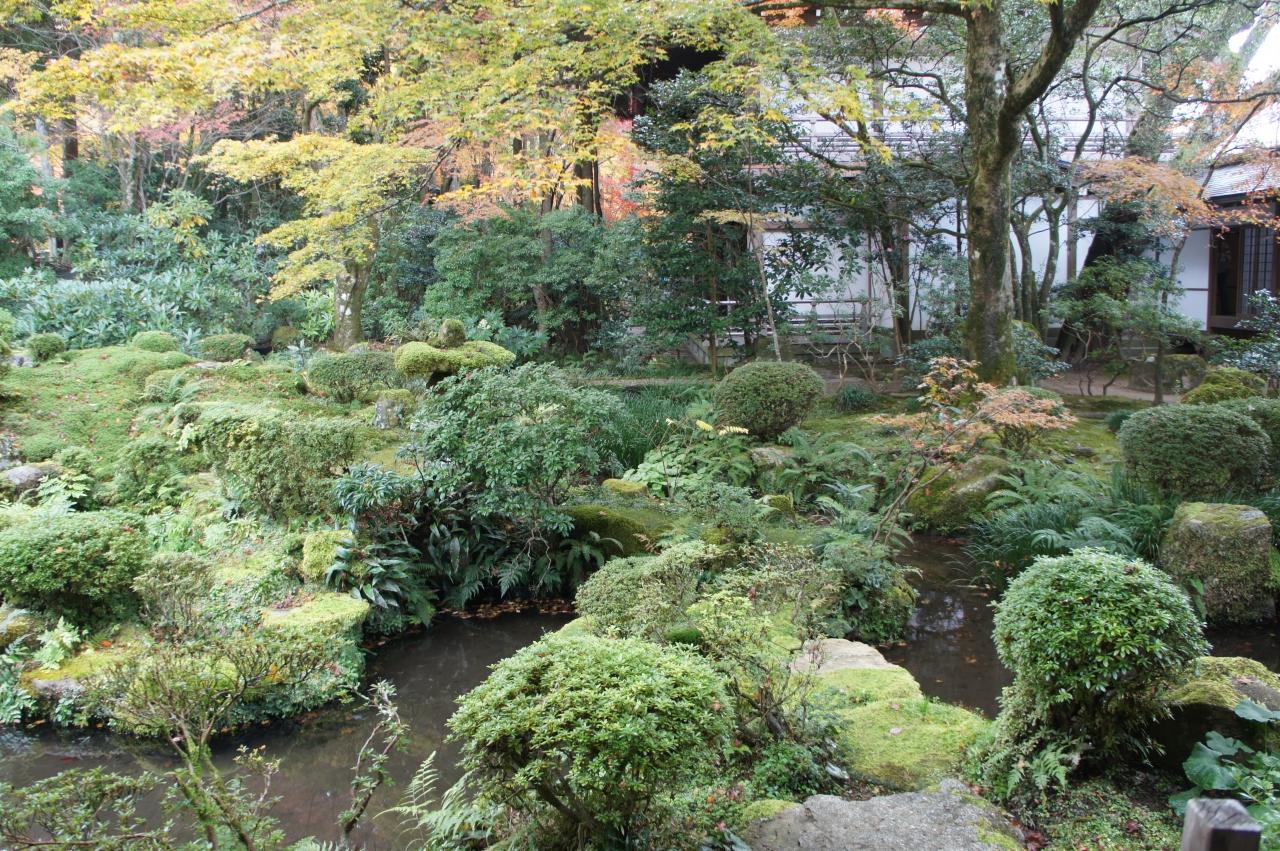ここも、勝林院の坊のひとつ。抹茶付で、お庭を眺めながら、一服するという嗜好のお寺です。ただ、宝泉院の大きな五葉松のようなインパクトはなくて、むしろ、玄関先から始まる細かな心配りを味わうのがいいと思います。さりげなく植えてある植物の種類の多さは、関東の庭では比較になりません。そのことで、季節の移ろいが味わい深くなっているのだと思います。なお、勝林院は声明(しょうみょう)の寺。歌うような読経を行います。そこからの延長から、ここには楽器のコレクションがいろいろ。音階に沿って18の石が並べられた「石琴」など。声明に対する思いから集め始められたのだそうですが、意外に印象に残るコレクションです。
