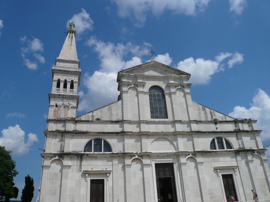 聖エウフェミア教会の鐘楼の上に立つ、ロヴィニの守護聖女