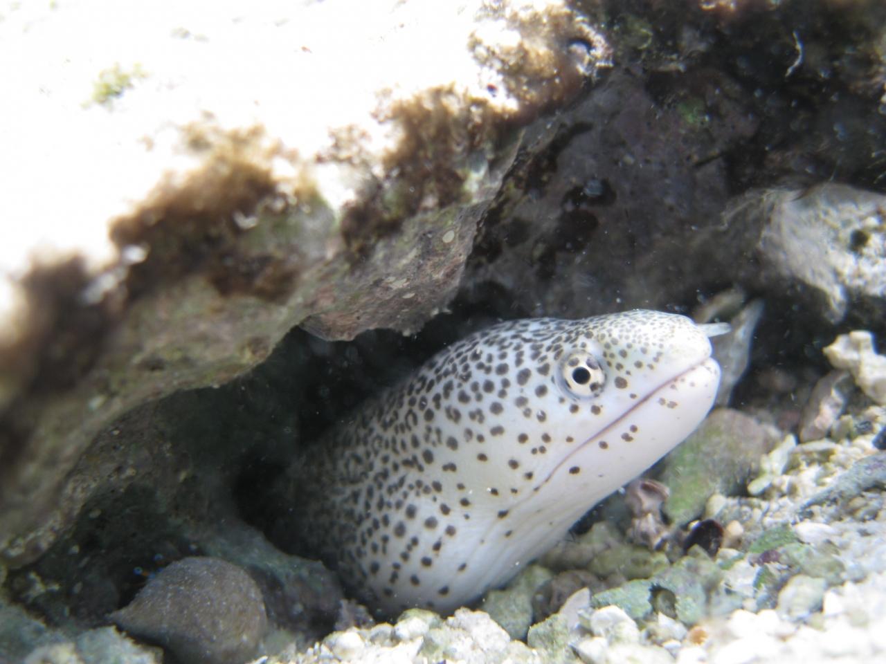 うつぼのコドモが警戒していました。目にも模様がある!