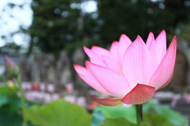 本堂の向って左手には見頃を向えた蓮が200鉢ほど。