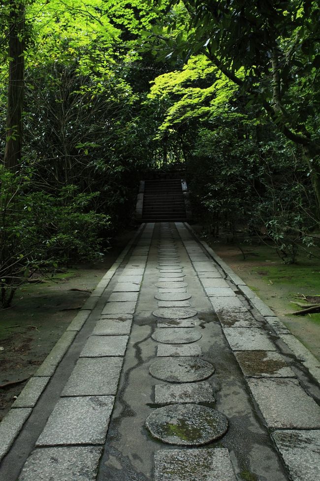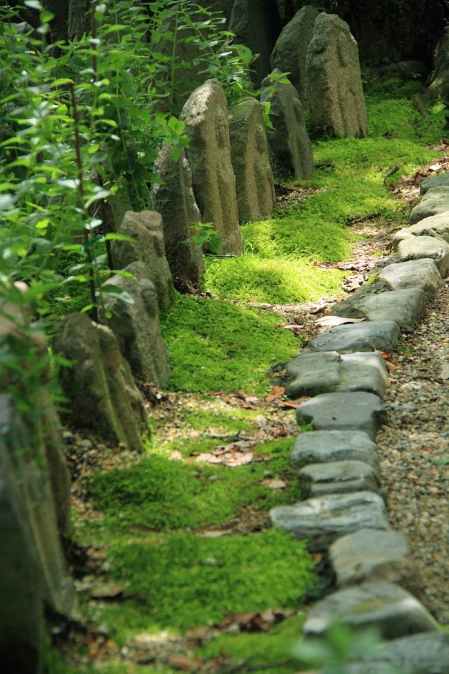 鑑真大和上の御廟手前にはビロードの様な見事な苔も。