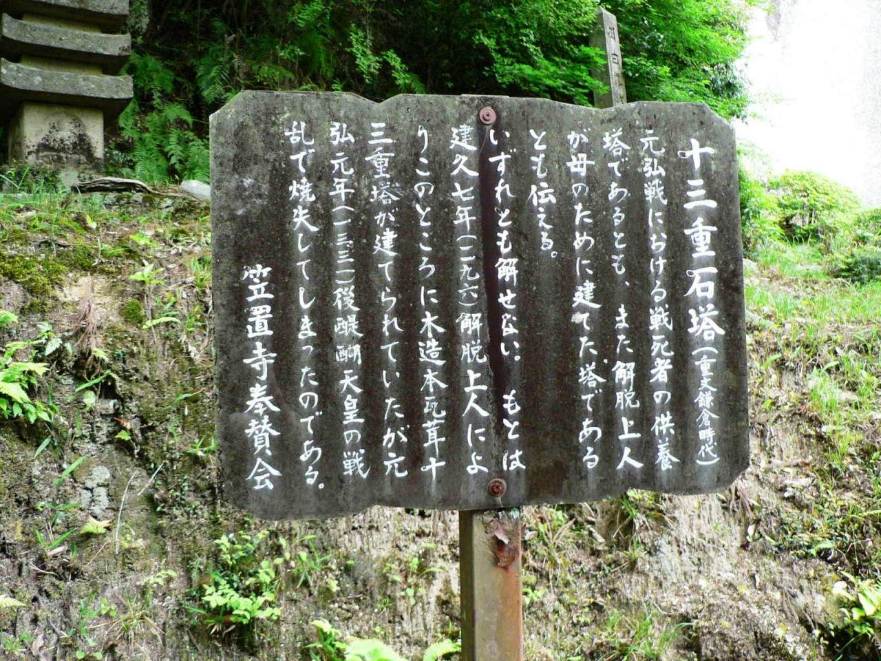 石造十三重塔。 かつて存在した木造十三重塔の跡に建てられている。鎌倉時代末〜室町時代の建立とのこと。