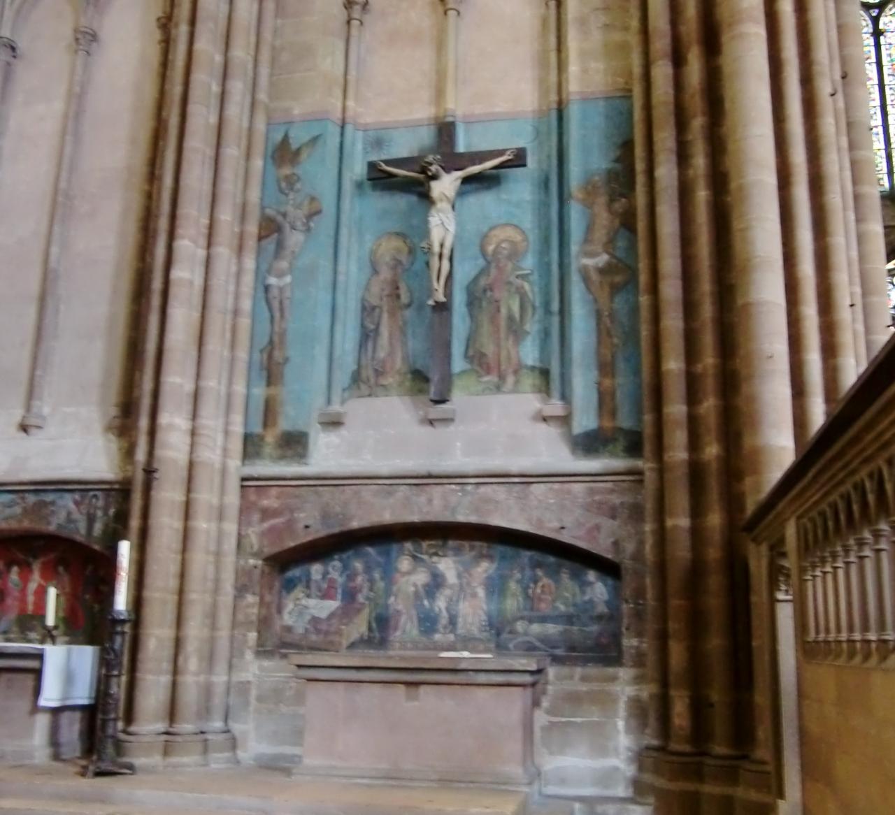 教会の模型が聖エリーザベトのアトリビュートだとは知りませんでした。そうですか、勉強になりました。柱の聖母の横の聖エリーザベトのフレスコ画、よく気が付かれましたね。私は旅するうさぎさんのご指摘で初めて気が付きました。