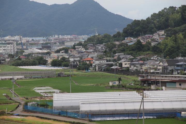 後は小さな上り坂一つで、他には広がる畦道田圃道、山並みを遠望して歩いて来ました。
