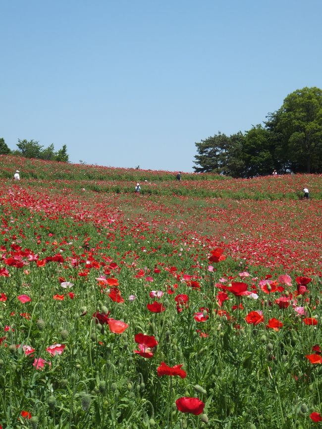 母にポピーを見にいこうと誘われて、昭和記念公園に行きました。