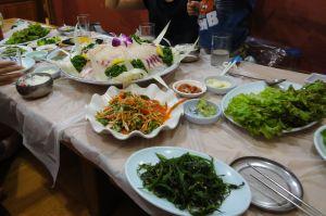 コチュジャンをつけてサンチュで巻いて食べるようです。