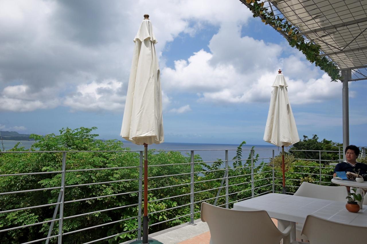 ここからの景色,外洋は素晴らしい青だ!遠く伊是名島などが見える.