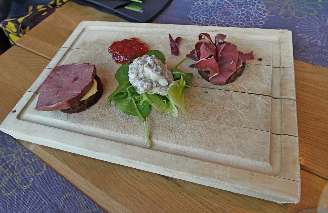 Kaarnan Riistalauta Game Plate 9.4ユーロ スモークトナカイ,鹿,ストロベリージェリー,マッシュルームサラダ パン