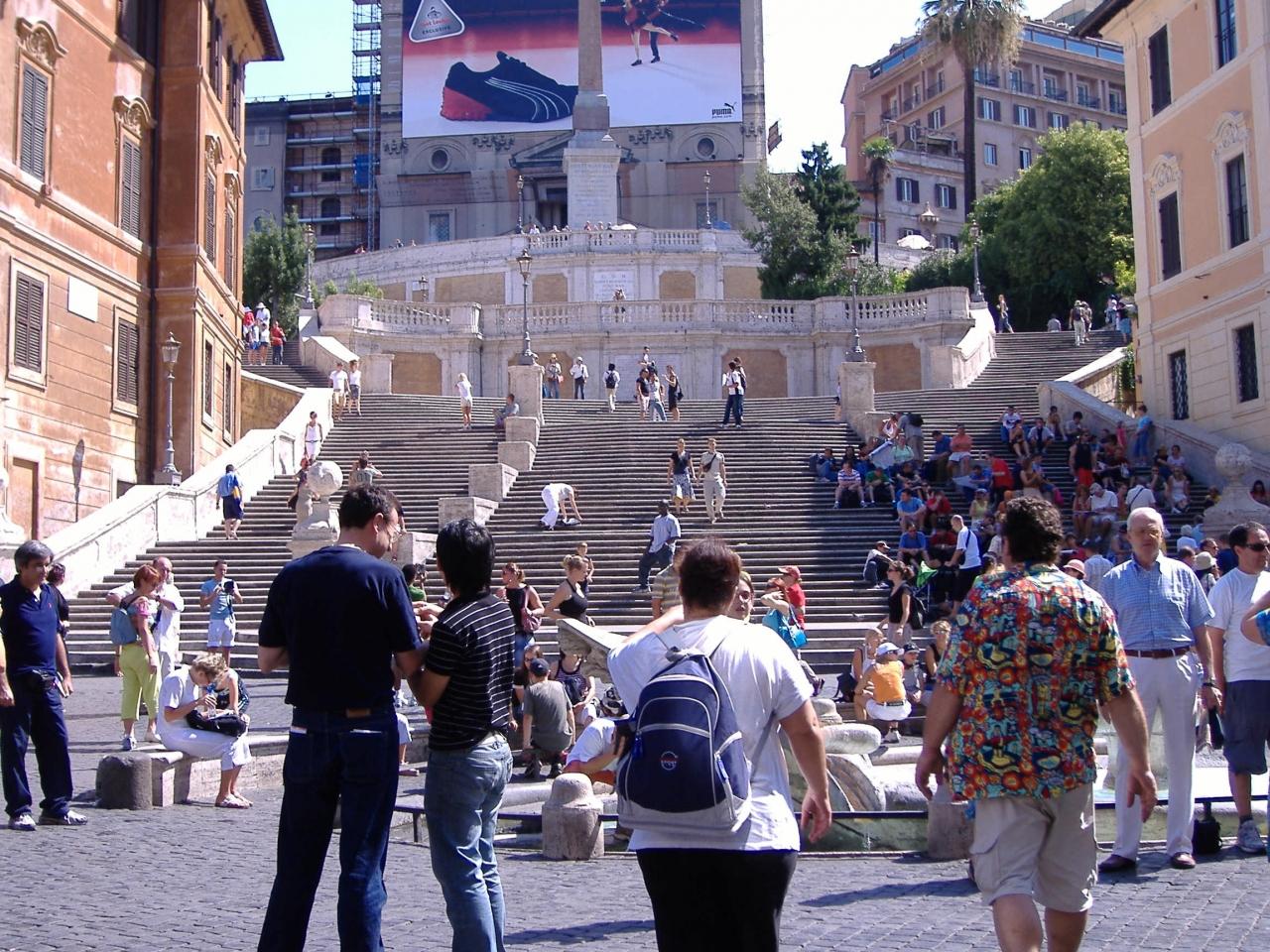 階段上のトリニタ・デイ・モンティ教会は修復中でした。階段でジェラート食べたくなる感じですが、現在は階段での飲食が禁止されてるそうです。 -