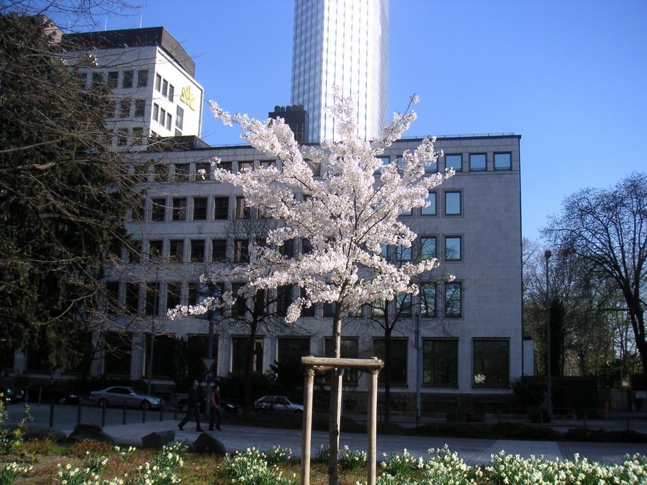 ジャパンセンターの公園にはまだ若い佐倉が植えられてオイルがなぜか其れがとてもかわいい、ビルの陰で日航の当たり具合でそのかれん差が変化する、これで変えると日本も桜の季節になっているだろう。
