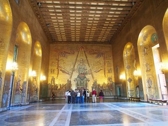 観光1カ所目は、ノーベル賞受賞者のバンケットが開かれる市庁舎に行きました。