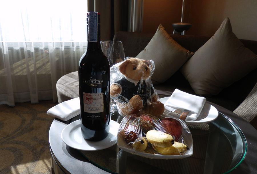 ワインとクマのぬいぐるみを頂く