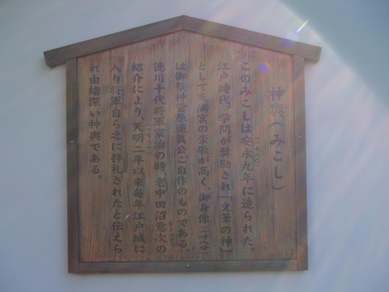 拝殿に掛かる「天満宮」の扁額。