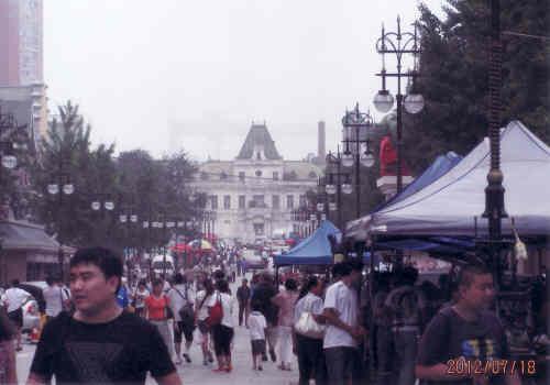 橋を渡った所がロシア街です。正面の建物は芸術展覧館です。現在化粧直し中です。