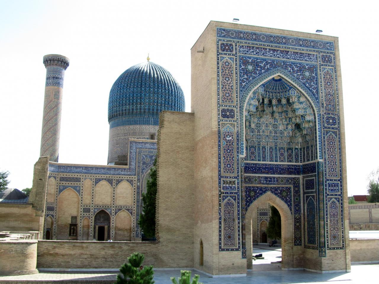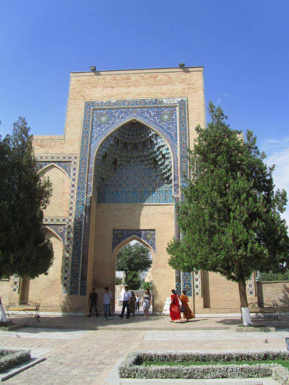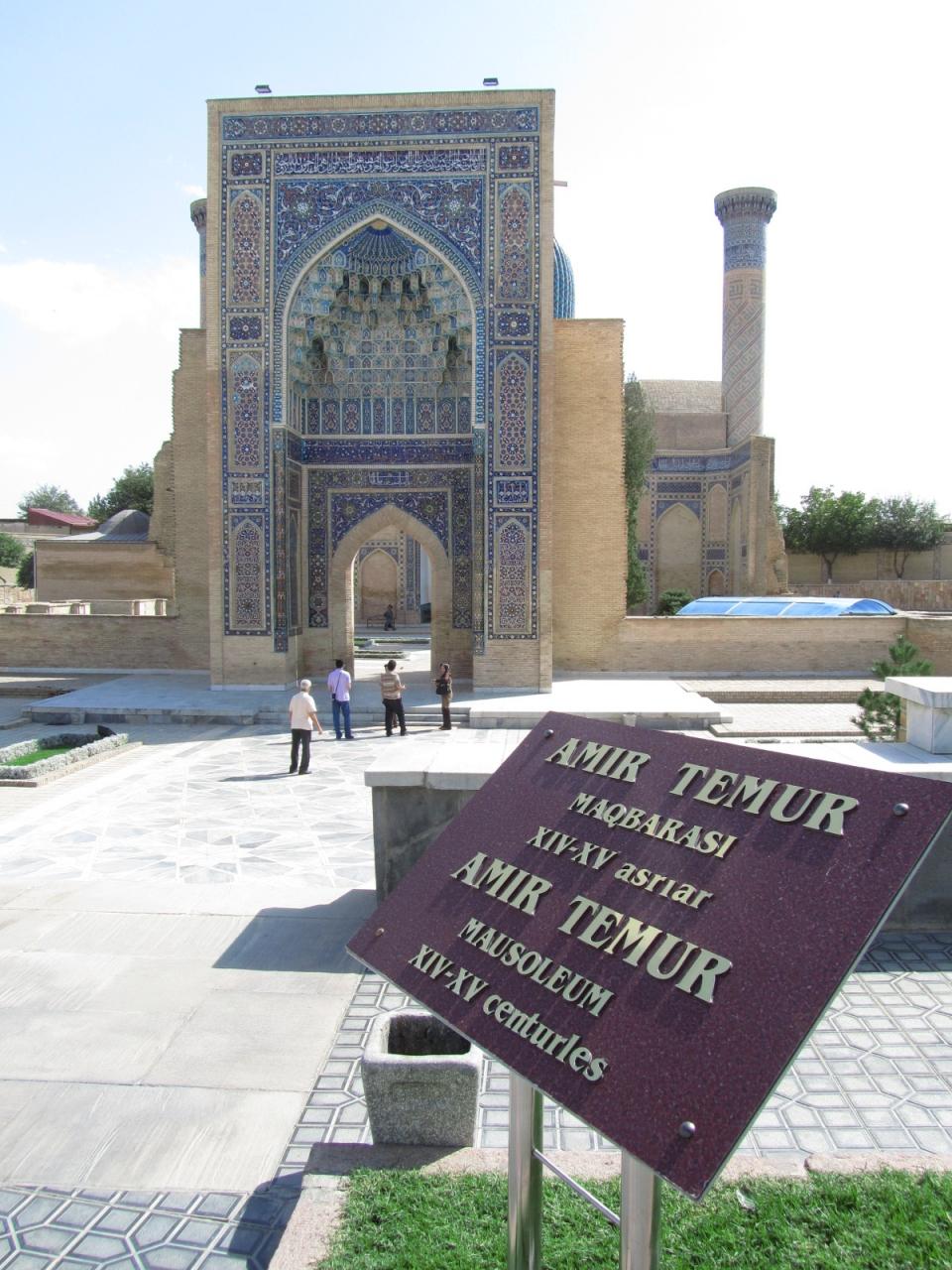 タジク語でアミールの墓という意味。アミールは本来、司令官を意味するアラブ語だが、15世紀のこの地域では遊牧貴族の族長、太守の意味で使われた。当時は君主としてハーンの称号を名乗れるのはチンギス・カンの男系子孫に限られていたため、ティムール朝の君主は名目上は格下のアミールを使っていた。ホテル・サマルカンドから南東方向へ300m、旧市街の外れにあるこの廟にはティムール、シャー・ルフ、ウルグベクという最盛期のティムール朝を統治した3代の君主が眠っている。