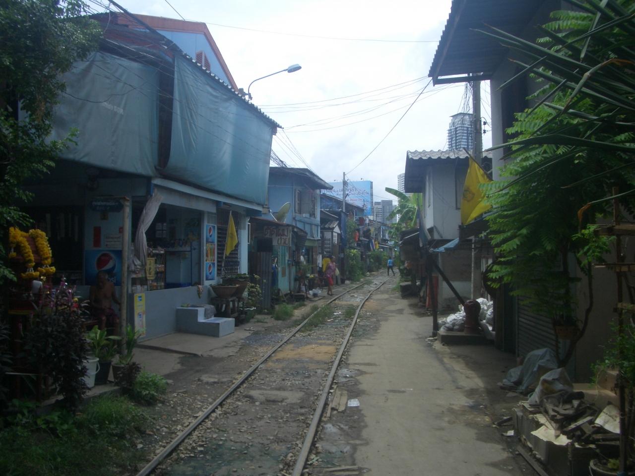 この貨物線を奥に進むと線路の両脇にスラムが形成されています。