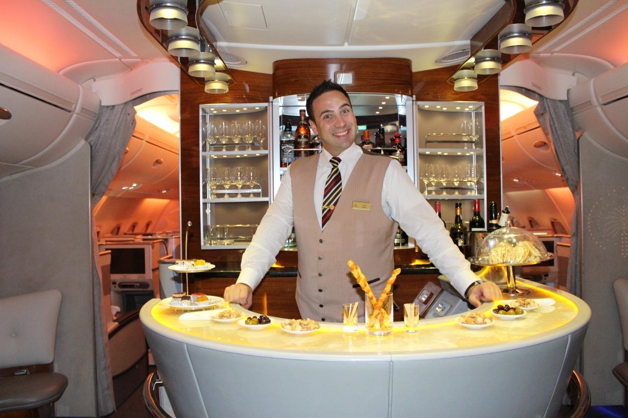 機内バーラウンジで飲んでいた時の会話で、艦長も成田・ドバイのEK/Fチケットが残ってるからご一緒してココで飲めたら最高だね!って話してたんですよ♪