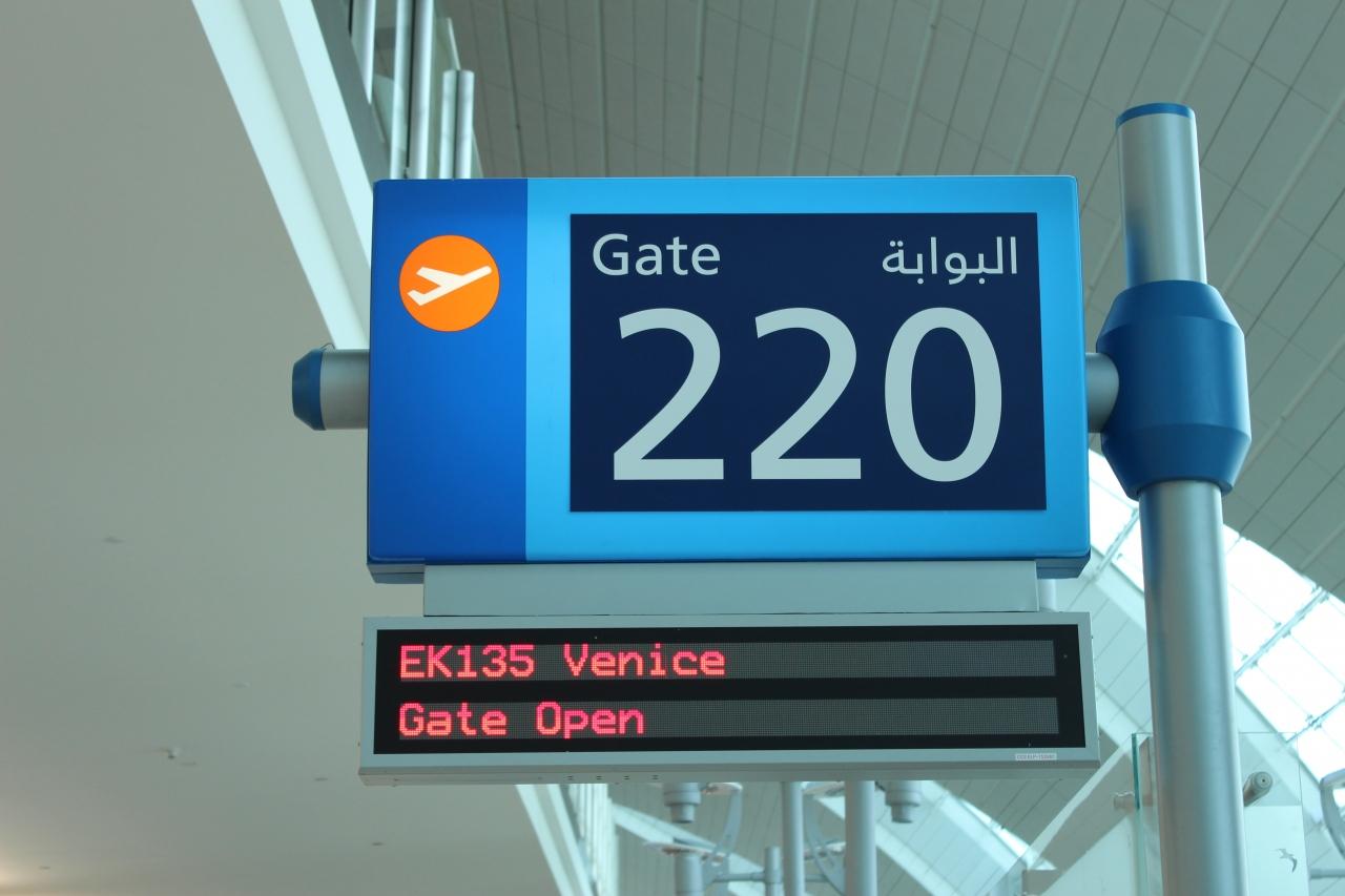 たしかに、ドバイ発は暗かった〜!ってか、そもそも人がぜんぜんいなかったんですけど(笑)