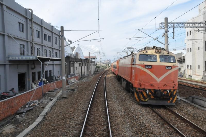 運転席横の前方かぶりつき席に座ることができました。新烏日から二水までは西部幹線を走り、かなりの頻度で列車とすれ違います。これは客車列車のキョ光号でしょう。