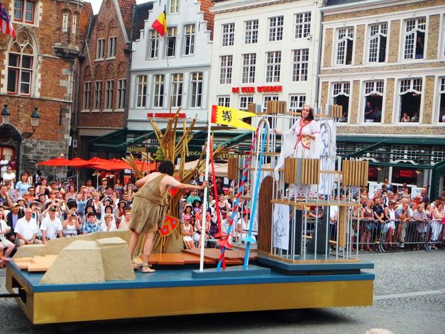 ところが、ブルージュの祭は、期待以上によかったです!これでもか、これでもか〜とばかりに、山車が(ちゃうちゃう、パレード!)延々と続くのです。