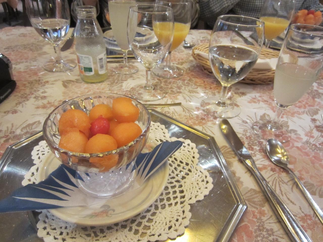 2012年スイス旅行6日目の朝です。ホテルマイサーでの初めての朝食風景。フレッシュなキウイ、オレンジ、パイナップルがあったので、みんな山盛り(笑)