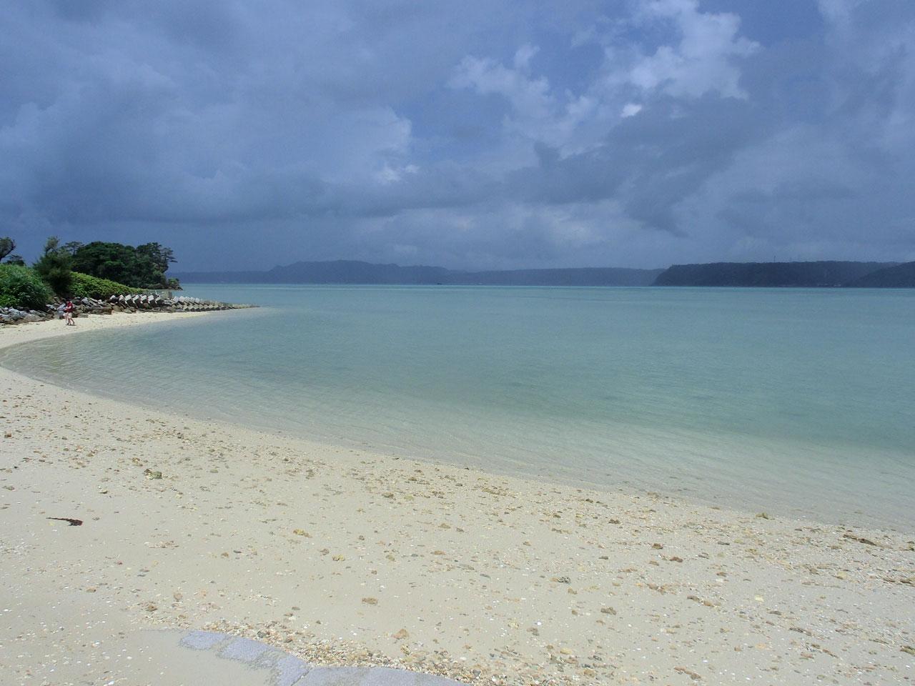 屋我地橋を、屋我地島に渡ったところに綺麗なビーチがありました -
