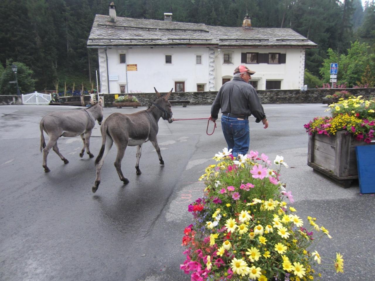 シルスマリアまでロバといっしょに歩くことに。ロバも犬と一緒で、車を全然こわがらないですね。