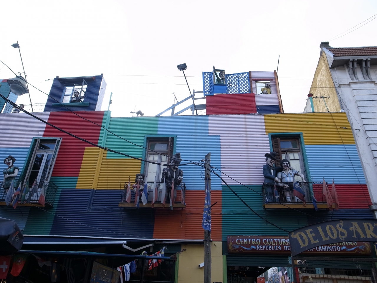 カビルド周辺で銀行を探し、両替をしてからタクシーに乗ってボガ地区へ。「カミニート地区」と呼ばれる一画が、タンゴ発祥の地だというので行ってみました。この辺りにはカラフルでアートな建物が並んでいます。